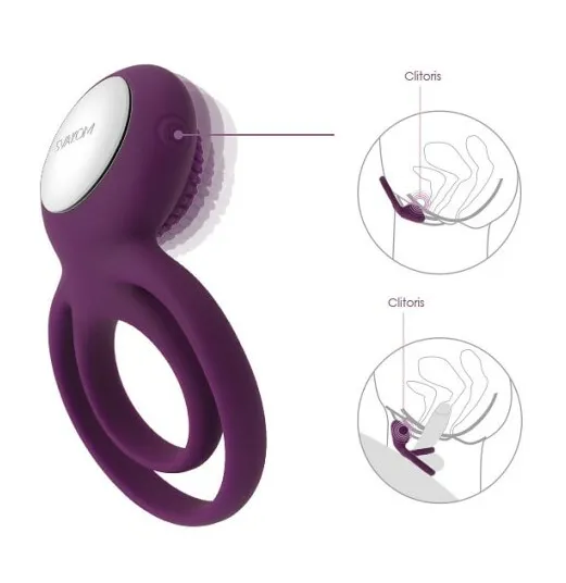 Svakom Tammy — это эрекционное кольцо с функцией вибрации и дополнительной петлей для мошонки, созданное для пар, которые любят экспериментировать в сексе. Девайс обеспечивает плотный обхват пениса, поддерживает стойкую эрекцию и усиливает возбуждение женщины за счёт клиторальной стимуляции.