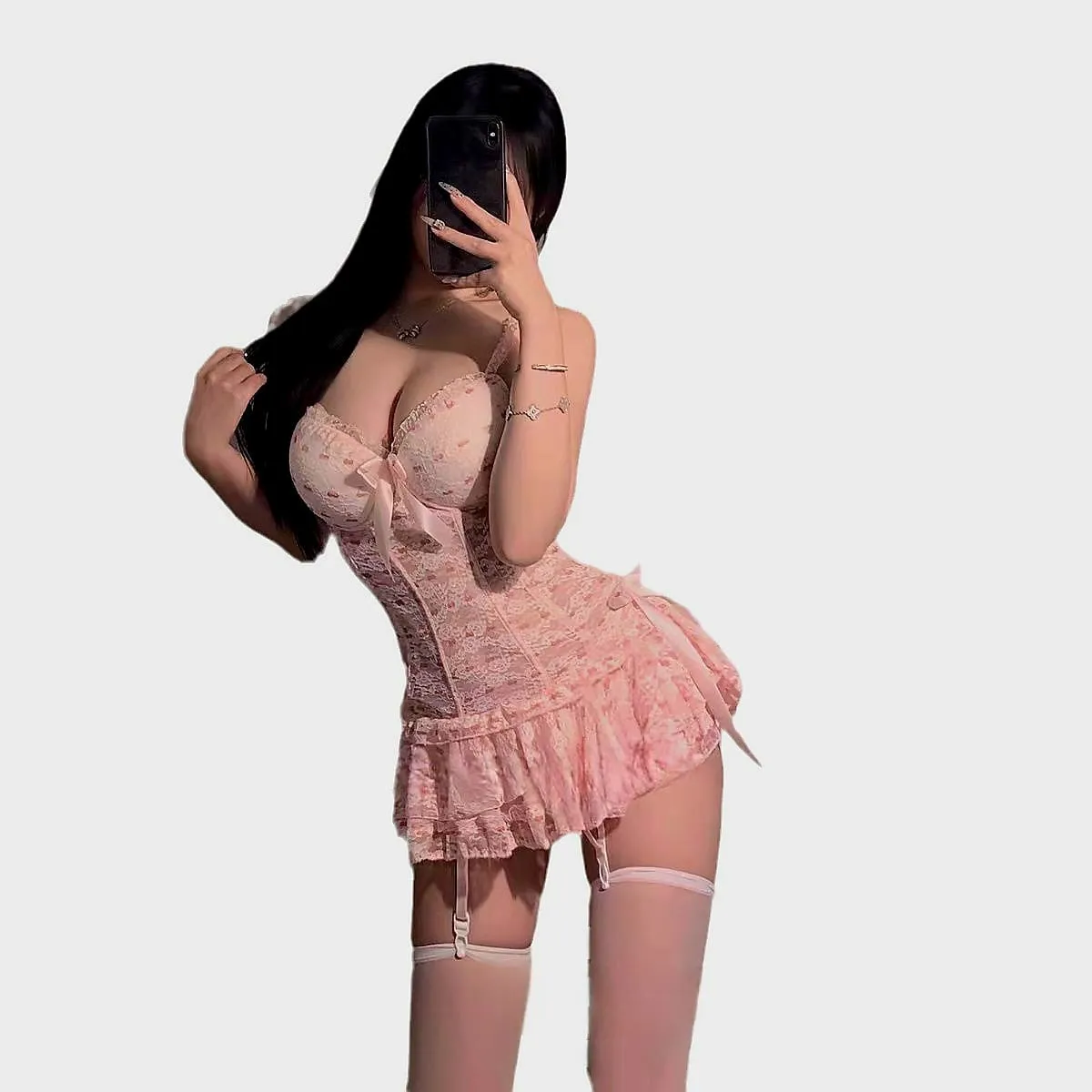 Утончённый комплект в нежно-розовом оттенке, выполненный из изящного кружева с тонкими бантами и соблазнительной шнуровкой по бокам. Подчёркивает женственность и придаёт образу особую романтичность. Лёгкая ткань мягко облегает фигуру, а изысканные детали делают комплект неотразимым.