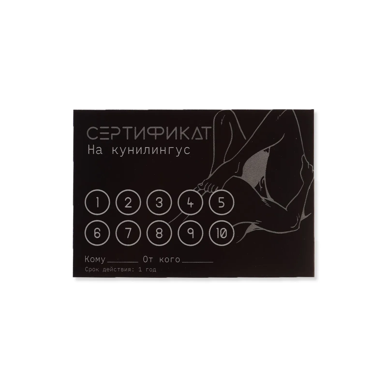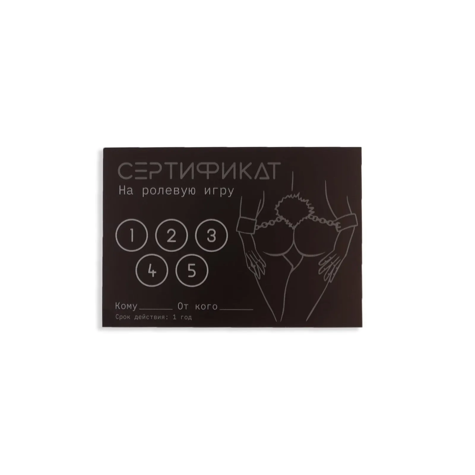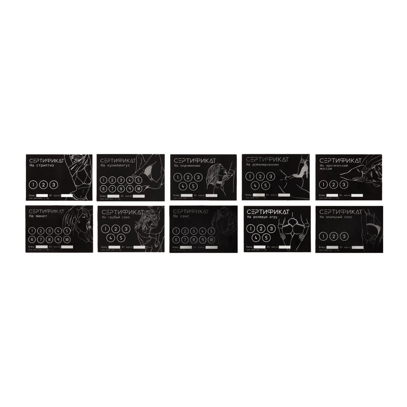 Подарите партнёру возможность выбора — каждый из 10 сертификатов предлагает откровенное задание или сценарий для взрослых. Такой набор станет нестандартным сюрпризом и поможет выйти за рамки привычного.