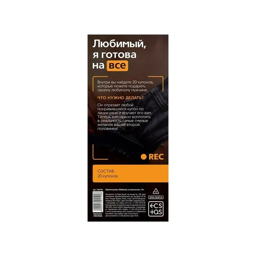Внутри набора — готовые купоны, которые можно вручить партнёру. Получатель выбирает понравившийся вариант, после чего желание реализуется в согласованной форме, создавая атмосферу доверия и взаимного внимания.