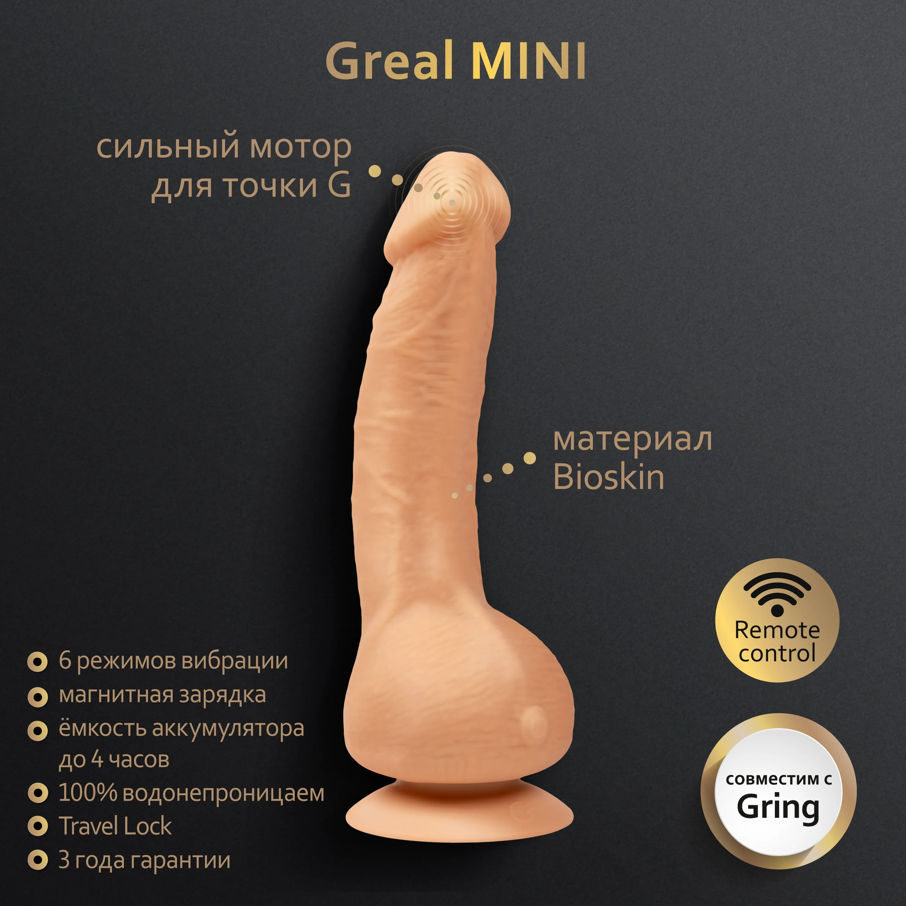 - Управление с помощью кольца Gring или Gring XL: удобный пульт + мини-вибратор на палец